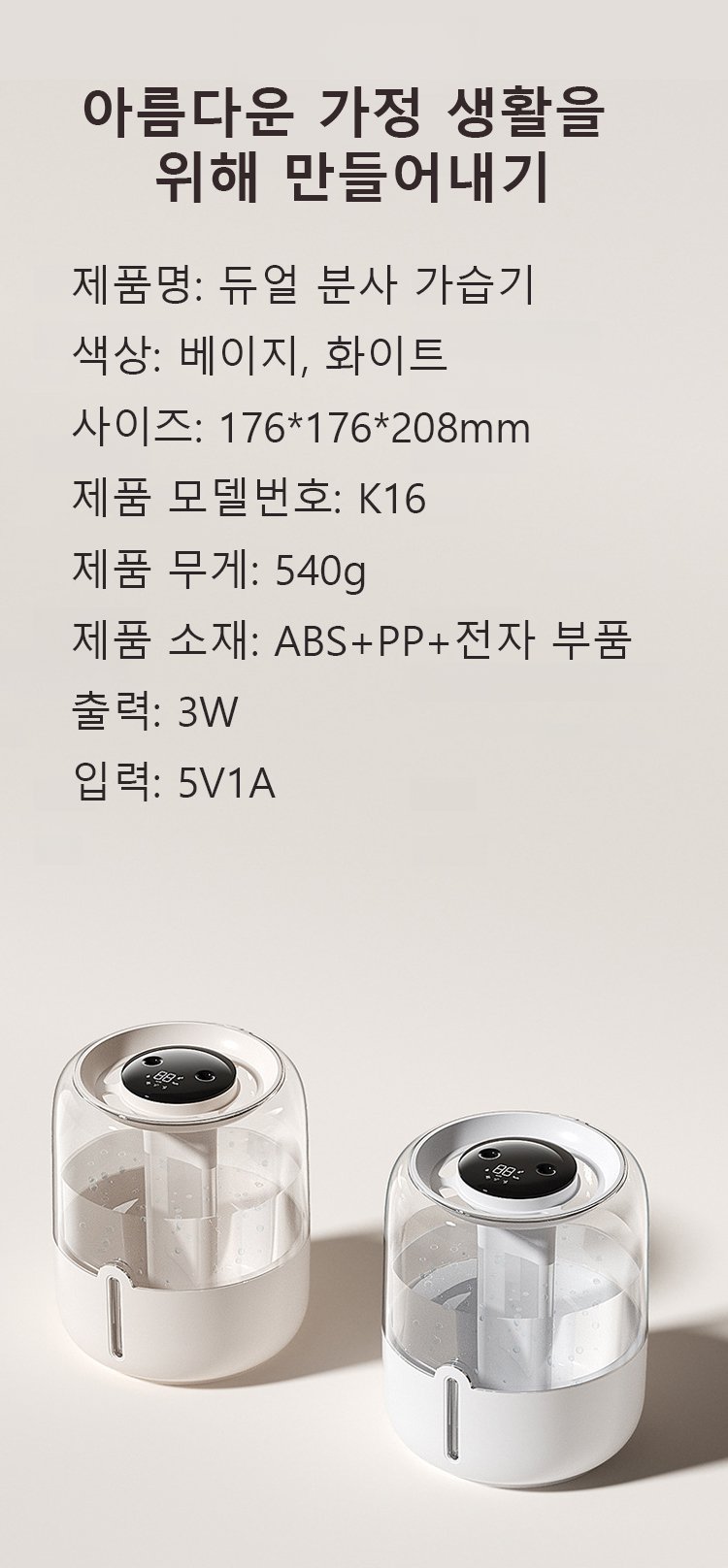 6.8L 대용량 듀얼 분무구 가습기